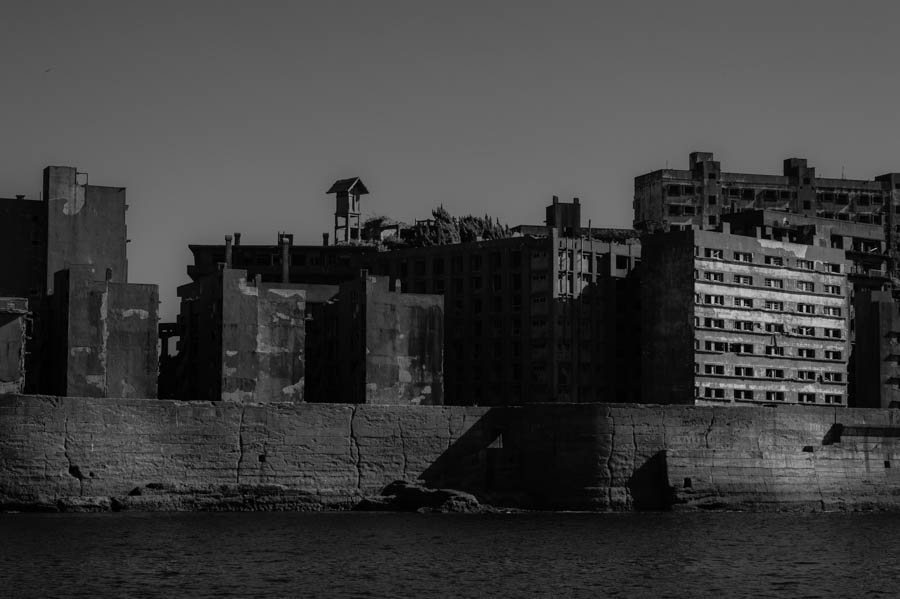 Hashima est une île de Nagasaki, plus communément appelée Gunkanjima, en ressemblance à la forme qu’elle évoque : un navire de guerre. Gunkan veut dire navire de guerre, et Shima ou Jima, île.