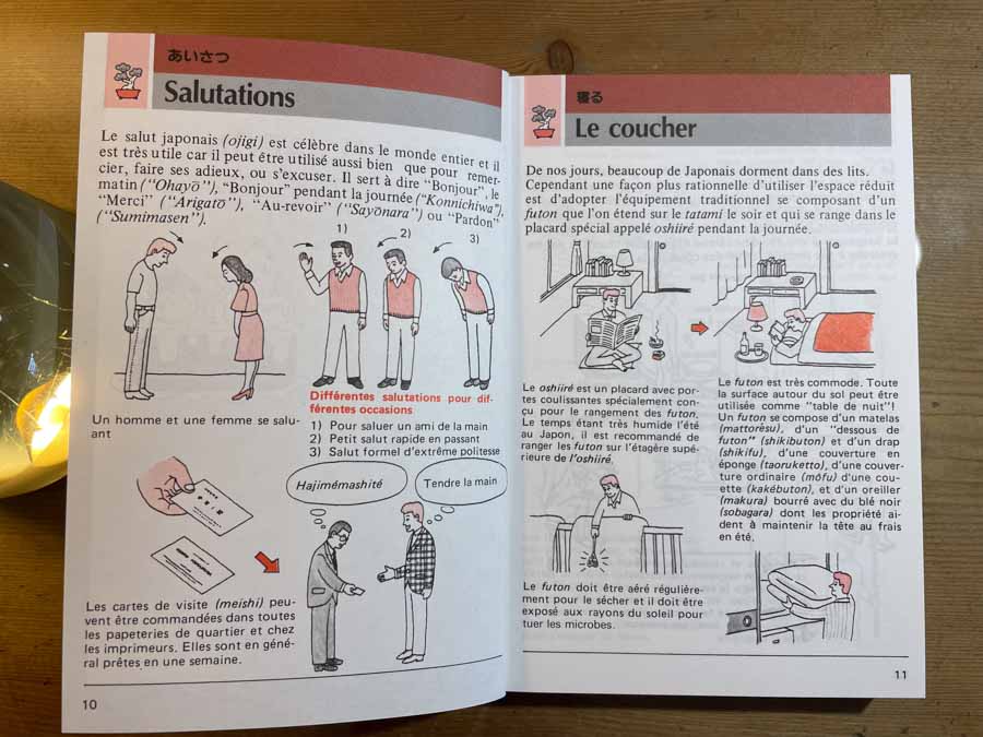 Ce petit guide de poche de la VIE PRATIQUE AU JAPON, réalisé et illustré sur 189 pages par un collectif d’auteurs japonais, vous expliquera aussi le Mode de Vie à la Japonaise.