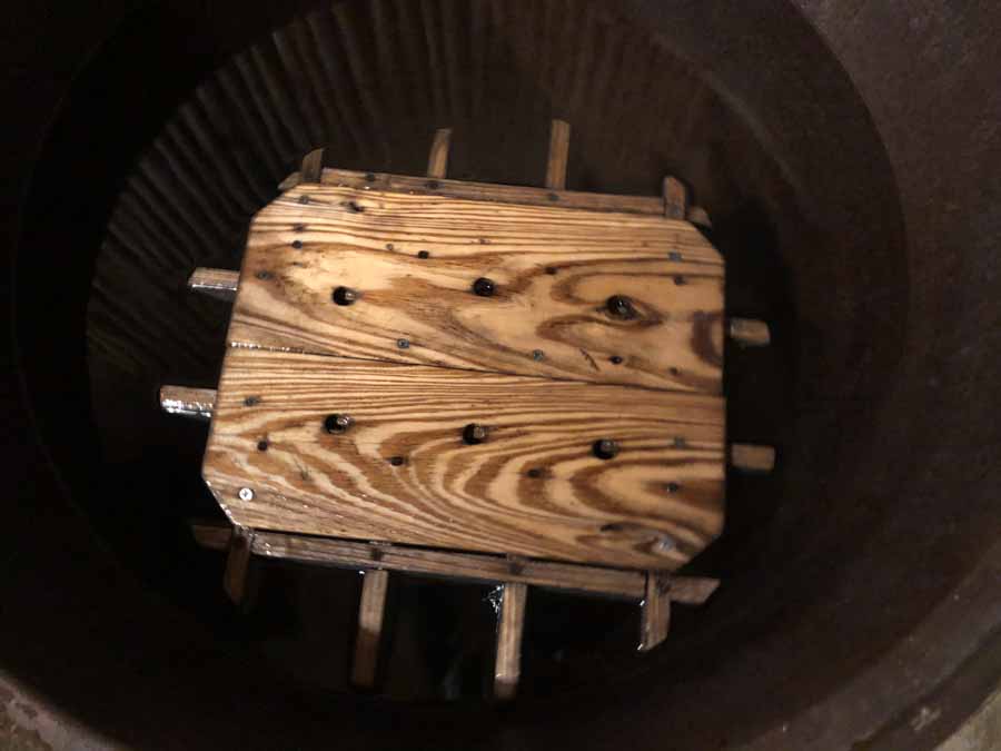 La baignoire est en bois, et l’eau est chauffée par un four à bois qui se situe juste en dessous de la baignoire. À l’intérieur, un petit tabouret en bois est présent pour vous isoler du fond de la cuve, qui est brûlante.