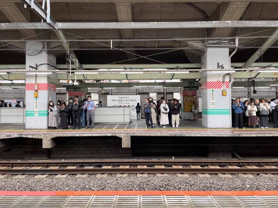 Au Japon, la précision est toujours de rigueur, même pour attendre son train.